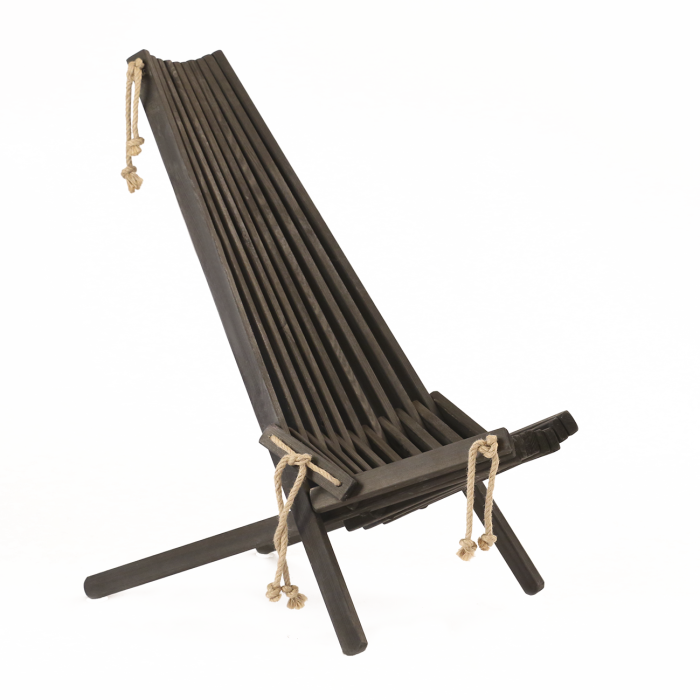 Pine wood’s natural, unique patterns are dimly visible through the transparent colour oil finish. Suitable for indoor and outdoor use. Please note that the black pine products are not recommended for glazed balconies or sunny decks with high temperatures. For such circumstances we recommend EcoChair alder black (90108).